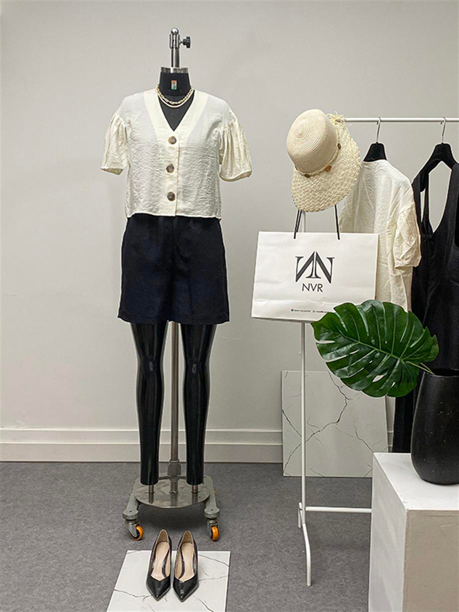 Önden 3 düğmeli, kolları pili detaylı, v yakalı krinkle gömlek
