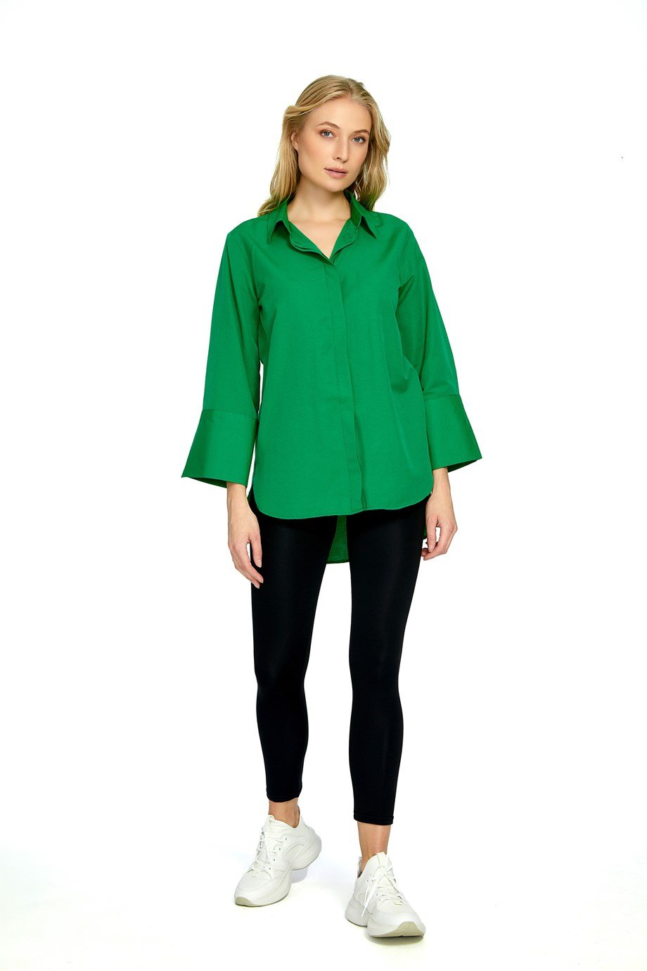 Uzun kollu, kalın manşetli arkadan ve önden düğmeli gömlek